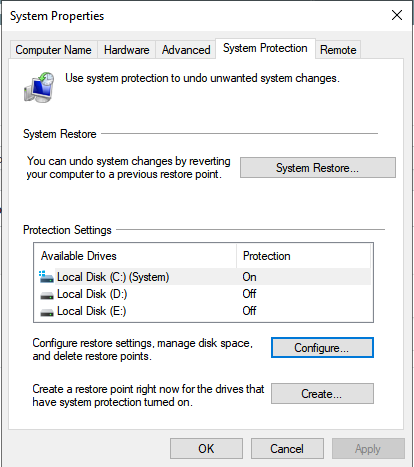 - Search for ” System Protection“