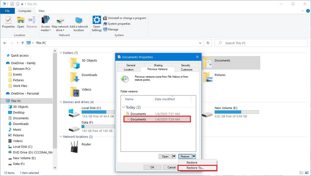 2. Turn On “Restore Previous Versions”